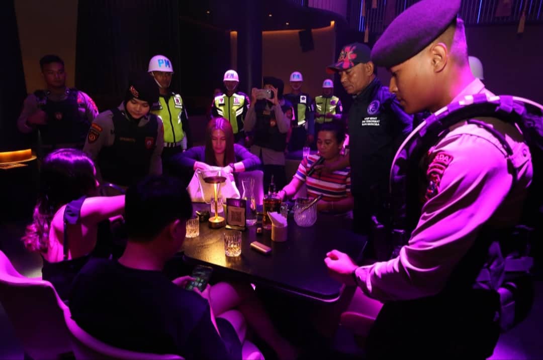 Di lokasi, petugas melakukan pemeriksaan terhadap pengunjung serta memantau area hiburan malam secara menyeluruh.