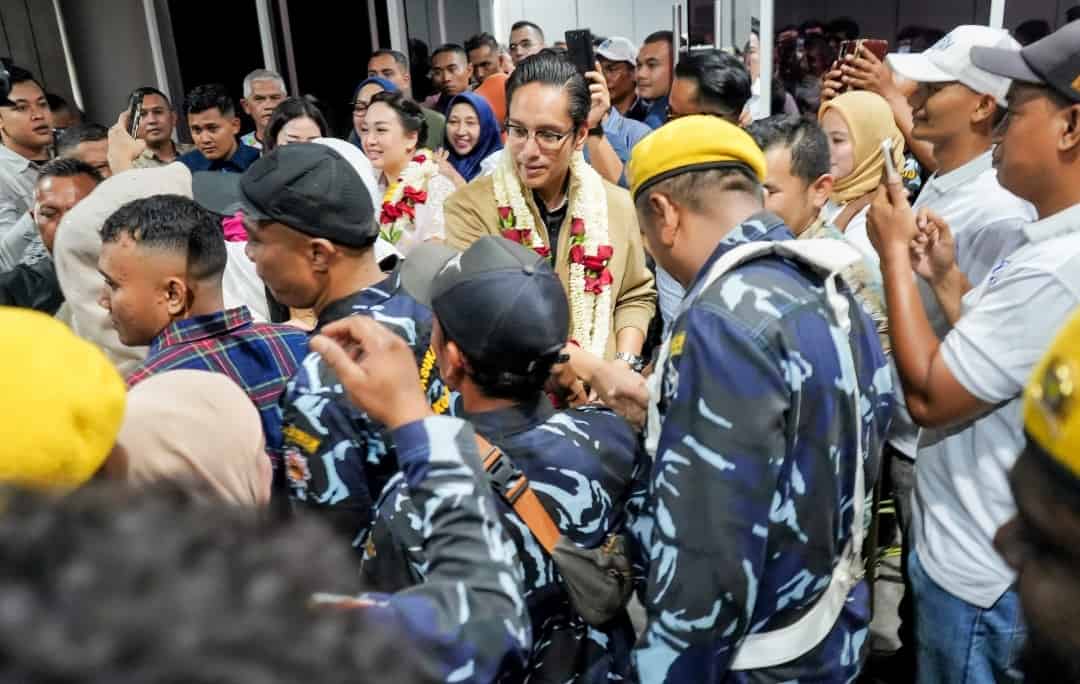 Kehadiran Rico Waas disambut antusias oleh ratusan masyarakat yang telah menunggunya di Bandara Internasional Kualanamu.